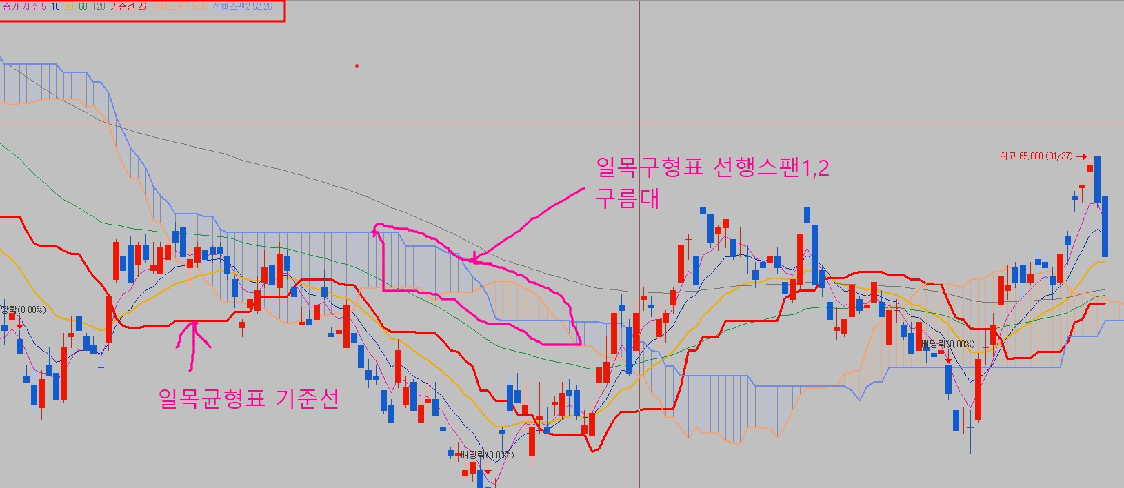 주식 차트 설명과 보조 지표 알아보자. 가격이동평균선, 일목균형표