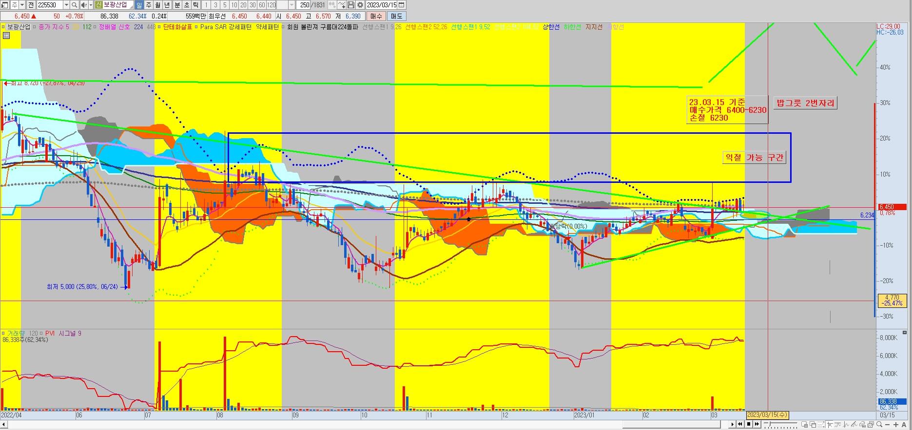 장기적으로 본 차트를 보면 전형적인 밥그릇 모양입니다. 현재 자리는 2번 자리이며 하락 구간을 아주 약하게 벗어나 있습니다. 살짝 벗어나 있지만 여기서 중요한 포인트는 '지수 하락에도 영향을 받지 크게 받지 않고 상승의 의지를 보이고 있다'는 것입니다. 수많은 종목이 지수 따라 하락을 하는데 말이죠. 개인적으로는 단기적 접근보다는 중. 장기가 더 적합하다고 판단이 되지만 오늘은 단기적인 관점에서만 이야기하겠습니다. 단기적 차트를 보시면 알겠지만 하락구간 삼각수렴을 벗어났고 저점지지라인과 112일선과 224일선 이격도 안에서 타점으로 생각해 볼 수 있을 거 같네요. 매수가격으로 6,400~6,230원이며 손절가격은 6,230 또는 저점구간 지지라인으로 잡으면 될 거 같습니다. 익절가격은 매집봉 윗꼬리 부근으로 잡고 대응하시면 될거 같습니다.